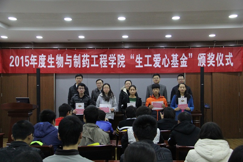 公司党委书记姜岷宣读了表彰决定,所有院领导为13位一等奖和52位二等奖获奖员工逐一颁发了证书和奖金。 “生工爱心基金”由学院教职员工捐资设立,其目的是帮助学院有困难的同学更好的完成学业,增强同学们的归属感和自信心,鼓励大家勤奋学习、追求梦想。基金面向学院在校全日制、没有违反校纪校规记录、没有受过任何处分、积极向上、身心健康的大一家庭经济困难本科生。制药1502班王改红作为获奖员工代表发言,表达了对学院的深深谢意和对未来的满满信心。