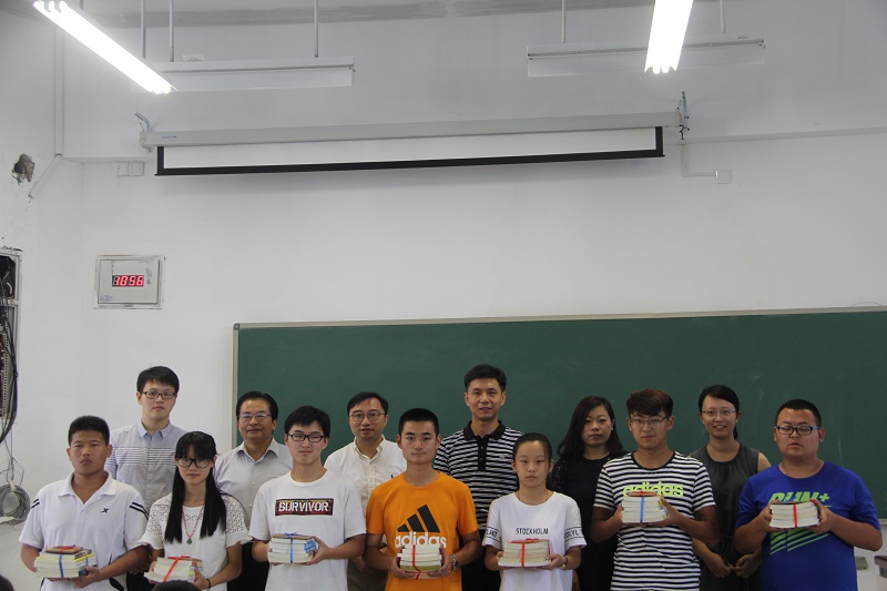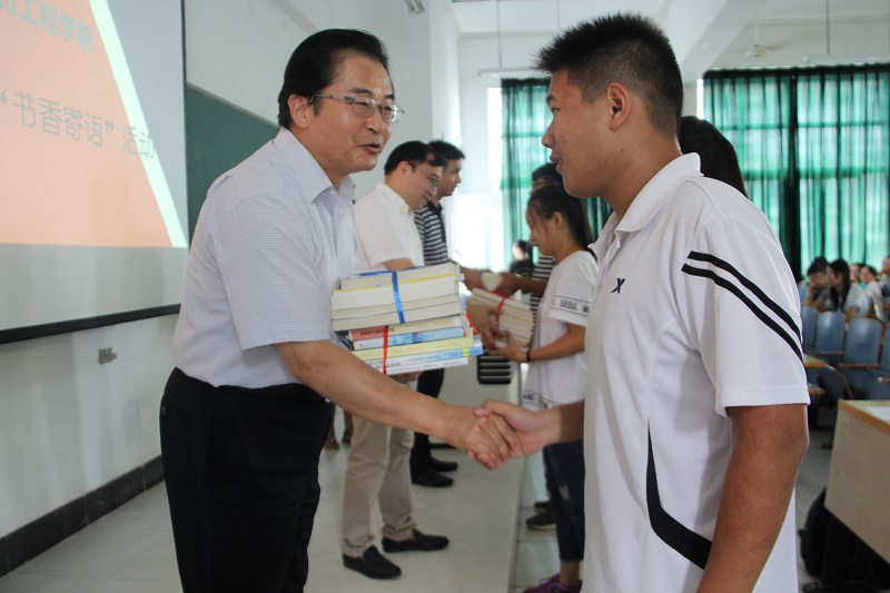为展示多彩的校园生活、寄语新生养成良好的阅读习惯,9月5日上午10:30,2016级新生入学教育系列活动之“书香寄语”赠书活动在厚学楼600教室举行。公司党委书记姜岷、关工委常务副主任缪昌美、党委副书记周辉等参加了此次活动。