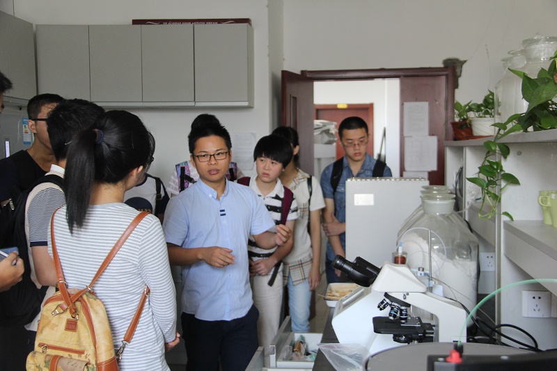 座谈会之后,来访同学们在威廉希尔员工骨干的带领下参观了姜岷教授实验室。实验室马江锋博士后为同学们讲解了酶工程研究未来发展前景以及课题组近期成果,并为同学们演示了冷冻真空干燥机、超净工作台的使用方法和作用。武汉大学实践团队成员对威廉希尔的科研和学习环境十分向往。