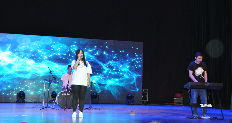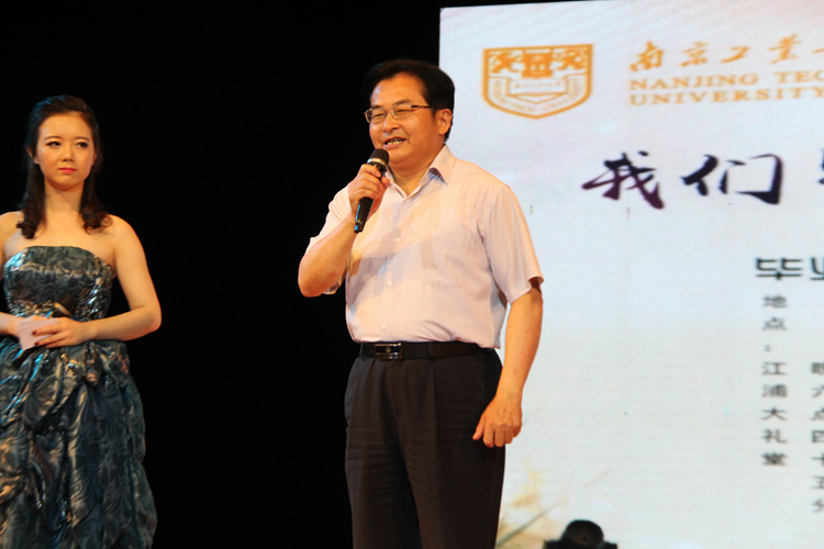 来自2016届毕业班的四位主持人宣布本场晚会正式开始。首先,学院关工委常务副主任缪昌美老师应邀为本次晚会致辞。缪老师生动诠释了“生情如夏花 工笔绘青春”这一主题——情如夏花,既包含我们2016届毕业生亲情、友情、爱情的美,又有情商、情怀、情趣的雅,还有热情、激情、豪情的乐。其中,亲情又有对父母、对母校、对祖国的感恩;友情又有对同学情、师生情、朋友情的珍惜;爱情又有对成家立业、幸福美满的追求。笔绘青春,承载的是我们2016届毕业生“梦笔生化”的专业梦、青春梦、中国梦;展现的是我们2016届毕业生用智慧谱写人生篇章时拥有神来之笔、意在笔先、妙笔生花的境界。他认为“青春无悔,因为有爱”,有爱,有梦想,有机会,有奋斗,一切美好的东西都能创造出来。他祝愿所有2016届毕业生在今后人生的道路上心想事成,一切顺达。随后,大屏幕上播放起了研会同学们为毕业生精心准备的视频。或许那面孔有熟悉有陌生,但是他们的眼里都透着对毕业的感伤,对未来的憧憬,对朋友的寄托。那边等着摄影师按下快门,这边同学互相整理学士服;那边几人围坐草地打牌欢闹,这边几人在镜头里留下青春的容颜……笑容虽在脸上,可我们又何曾不知,不舍的泪花早已在心底流淌成河。一段充满记忆的视频之后,晚会在临时乐队的歌声中正式拉开帷幕。