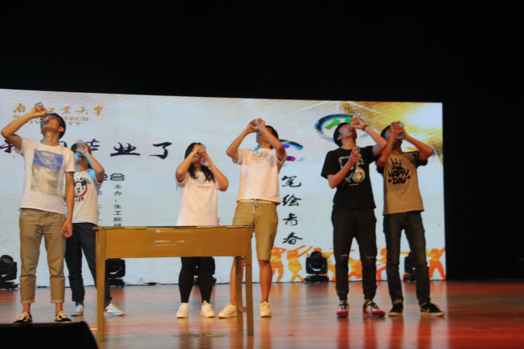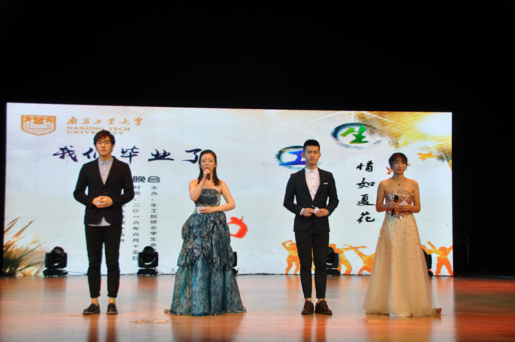 擎虹棍道社同学们的双节棍表演《醉擎虹》劲道十足,双节棍上喷出火花精彩刺激,璀璨炫目;由生工1204班毕业生同学的创意集体舞《我的青春》为台下的同学、老师展现了富有活力的青春色彩;制药1202班,生工1202班的同学通过音乐情景剧,表达了对丰富多彩的老员工活的怀念和对深厚同学情谊的珍惜;来自黄和老师实验室的研究生毕业生邬文嘉和李涛用浑厚而饱含激情的歌声为大家献上了《月半小夜曲》,在舞台上为三年研究生生活画上圆满的句号。整场晚会中,设置的若干互动与抽奖环节更是让晚会高潮迭起,使晚会现场气氛活跃。晚会以歌曲串烧大合唱《献给明天的你》结束,仿佛不说再见已成为每位毕业生心有灵犀的默契。一首歌唱不尽四年的点点滴滴,一支舞跳不出四年的成长轨迹,但那四年的美好时光已经被小心收藏,曾经洒脱璀璨的梦想,如今依旧光芒万丈。