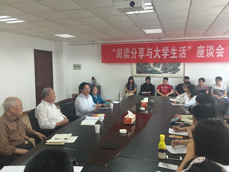 生物制药工程学院关工委常务副主任缪昌美老师主持会议。他结合“两学一做”和学风建设,从“阅读分享丰富老员工活,‘两学一做’谱写青春篇章”的高度,勉励同学们学习黄殿臣、方礼龙、范伟平三位老教授的人文精神、科学智慧、治学理念、思想境界和社会责任,珍惜时光,沐浴书香,丰富阅历,善于担当。座谈会自始至终洋溢着热烈的气氛。