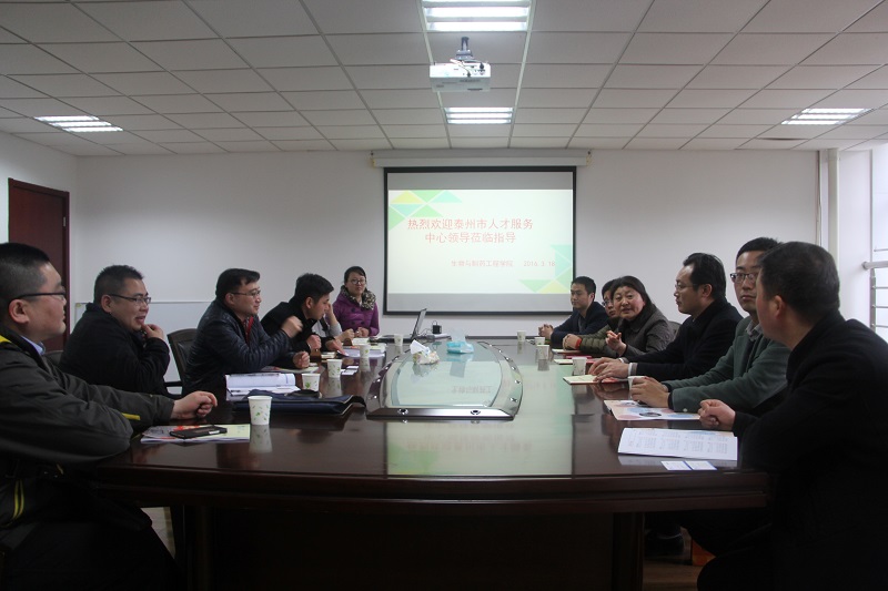 3月18日下午15:00,泰州市人才服务中心主任钱筱湄一行到威廉希尔交流调研2016届毕业生就业工作。泰州市医药高新区人事局、泰兴市人社局、姜堰区人社局、高港区人社局、靖江市人社局相关人员陪同交流。公司党委书记姜岷、党委副书记周辉、经理助理胡南等参加交流会。交流会由公司党委副书记周辉主持。