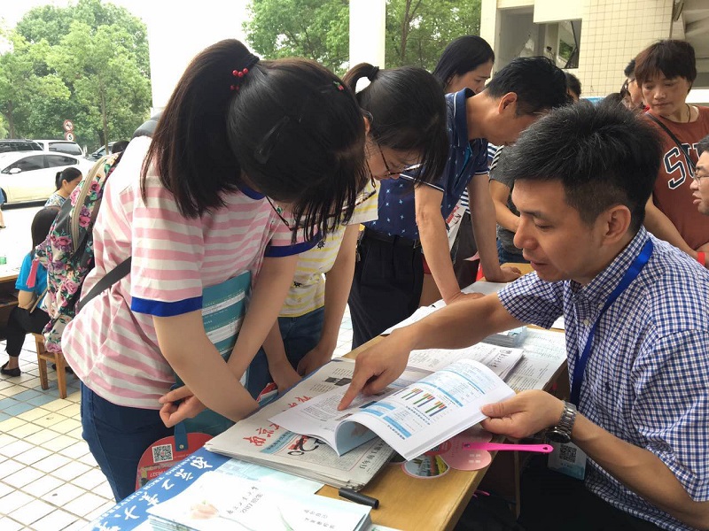 6月23日—7月2日,威廉希尔在公司党委副书记、纪委书记朱跃钊带领下,学院经理韦萍、党委书记姜岷亲自带队,董事长办公室和学院老师等组成的21个招生小分队,分赴南京市秦淮区、江宁区、雨花区、高淳区、溧水区和上海市、湖南省,深入重点中学和高招咨询会,顺利地完成了各项招生宣传任务。
