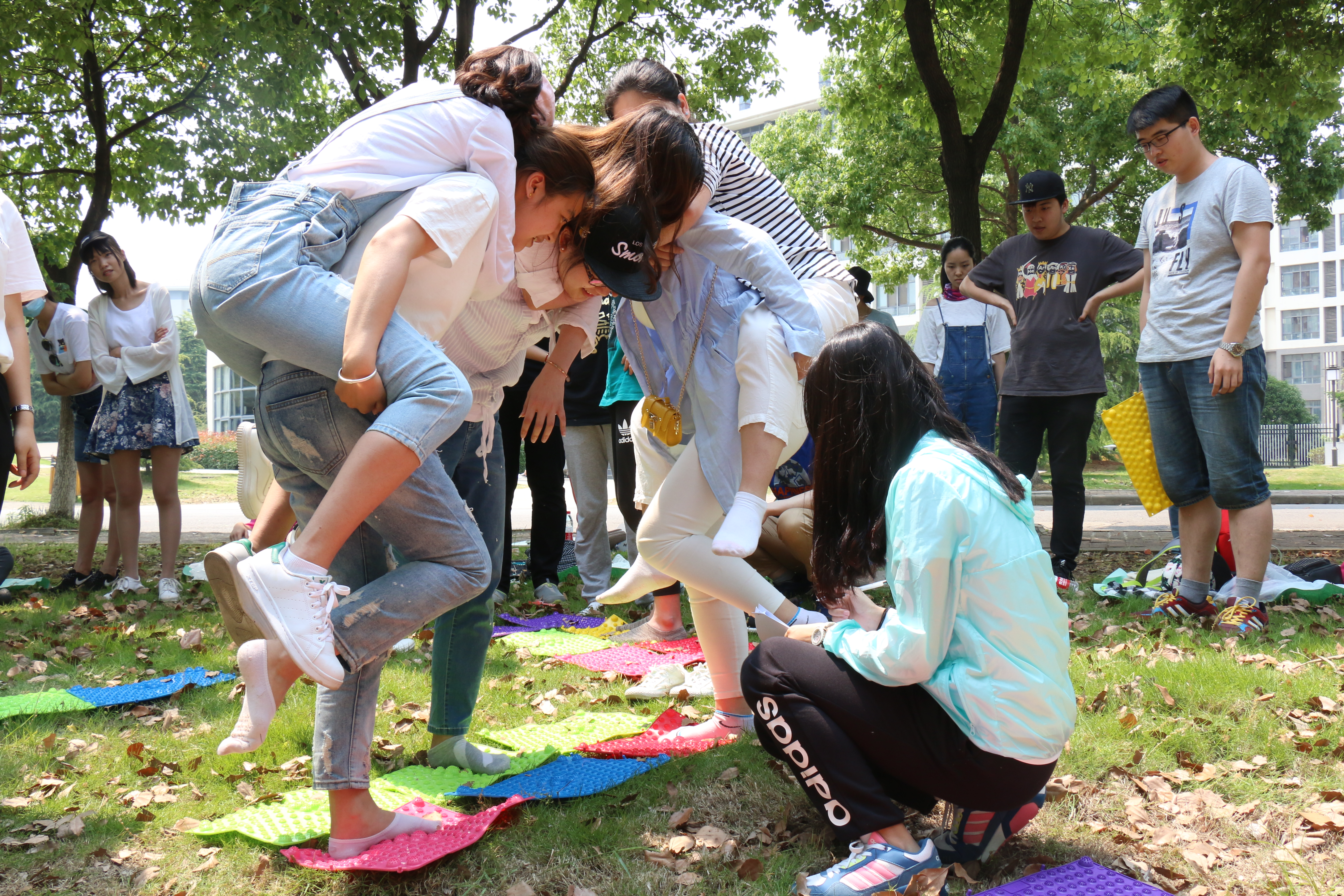 经过两个小时的休憩,我们继续下午的游戏,南审员工也积极加入,大大的鼓舞了同学们的活动热情。“抱成团”和“解手链”活动考验了团队协作和凝聚力,“蹲萝卜”活动考验了队员们的反应速度和团队行动一致性,而“吃饼干”活动则进一步拉近了兄弟院校同学们的距离,同学们积极参与,欢声不断。时间很快,本次毅行在愉快的氛围中结束了,参赛同学和工作人员合照后依依惜别,纷纷留下美好的记忆。