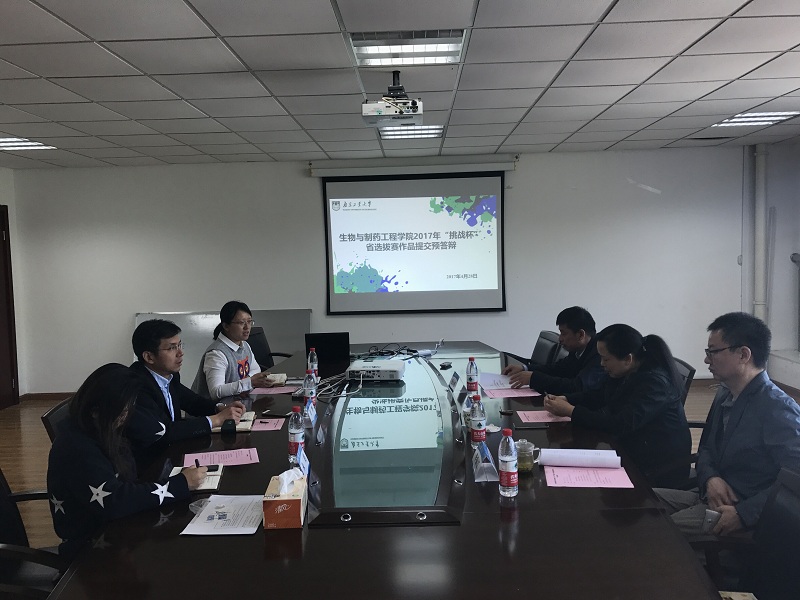 4月28日上午10点半,威廉希尔在生工楼210举行2017年“挑战杯”江苏省选拔赛作品提交预答辩。威廉希尔经理韦萍,校教学事务部副部长钱小明,威廉希尔副经理李振江、党委副书记周辉,校团委实践服务部副部长王菲,威廉希尔团委书记朱皓、指导教师章文明等参加活动。威廉希尔团委副书记吴雪主持答辩。