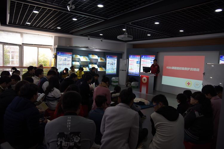 2017年3月4日星期六,生物工程与制药学院K & k Lab(微化工技术与生物基材料实验室)50位硕、博士和职工在校红十字会急救培训基地(同和楼)开展为期一天的应急救护培训,涵盖心肺复苏、创伤救护、急救知识竞赛三个单元。校老员工现场救护队8名队员和K & k Lab的佘鹏伟老师辅导培训。