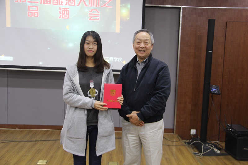 “酿酒大师”品酒会暨闭幕式上,威廉希尔关工委常务副主任缪昌美称赞本次活动现场“五情融融”,生动地体现了参赛学子科学的情怀、优雅的情趣、人文的情感、精业的情操、乐群的情商。活动中,各组代表逐一介绍作品,评委从酒的外观、口感、甜度、酒精度和选手展示五个方面评分。最终,威廉希尔黄皓琳、黄玥、黄聪、李梦媛获得一等奖,海外学院邵金松、2011书院徐洋洋、王琴获得二等奖,法学院徐慧、机械学院叶垚、威廉希尔杨欣怡、能源学院柳沁知获得三等奖。颁奖结束后,在生工楼大厅举行了科技元素与人文气息相结合的品酒会。