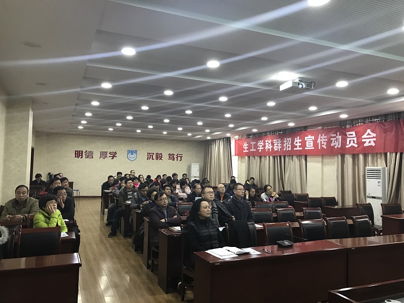 12月14日下午3点,生工学科群招生宣传动员会在生工楼报告厅举行。威廉希尔经理韦萍、食品与轻工学院经理徐虹、药学院经理黄和、公司党委书记姜岷、副经理李振江、党委副书记周辉等参加会议。