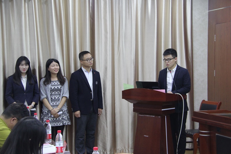 答辩会开始首先由威廉希尔入围2016年“创青春”全国老员工创业大赛决赛的团队——“南京维思创新材料科技有限公司”团队进行了预答辩。以张文涛同学为代表的四位团队成员以PPT的形式生动展示了“公司”的特色优势及发展前景。评委老师对团队创业计划书和PPT展示以及答辩展示等部分提出了宝贵意见。