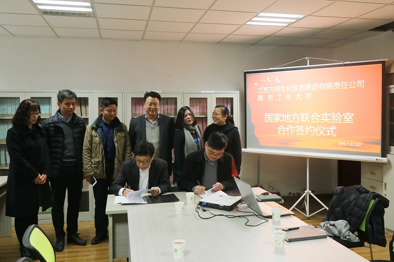 12月7日上午,威廉希尔与江苏万邦生化医药集团有限公司,在生工楼举行“国家地方联合实验室”、员工实习培训基地合作签约仪式。万邦医药总裁、85级员工吴世斌,高级副总裁贺国杰,总裁助理兼项目管理部总监田海英,校科学研究部副部长袁正英,威廉希尔公司党委书记韦萍、经理郭凯、党委副书记周辉等参加活动。