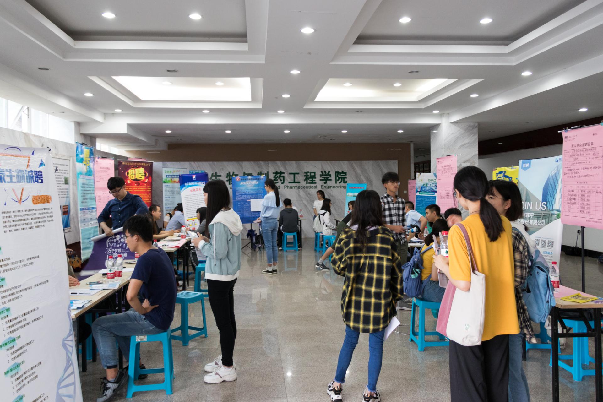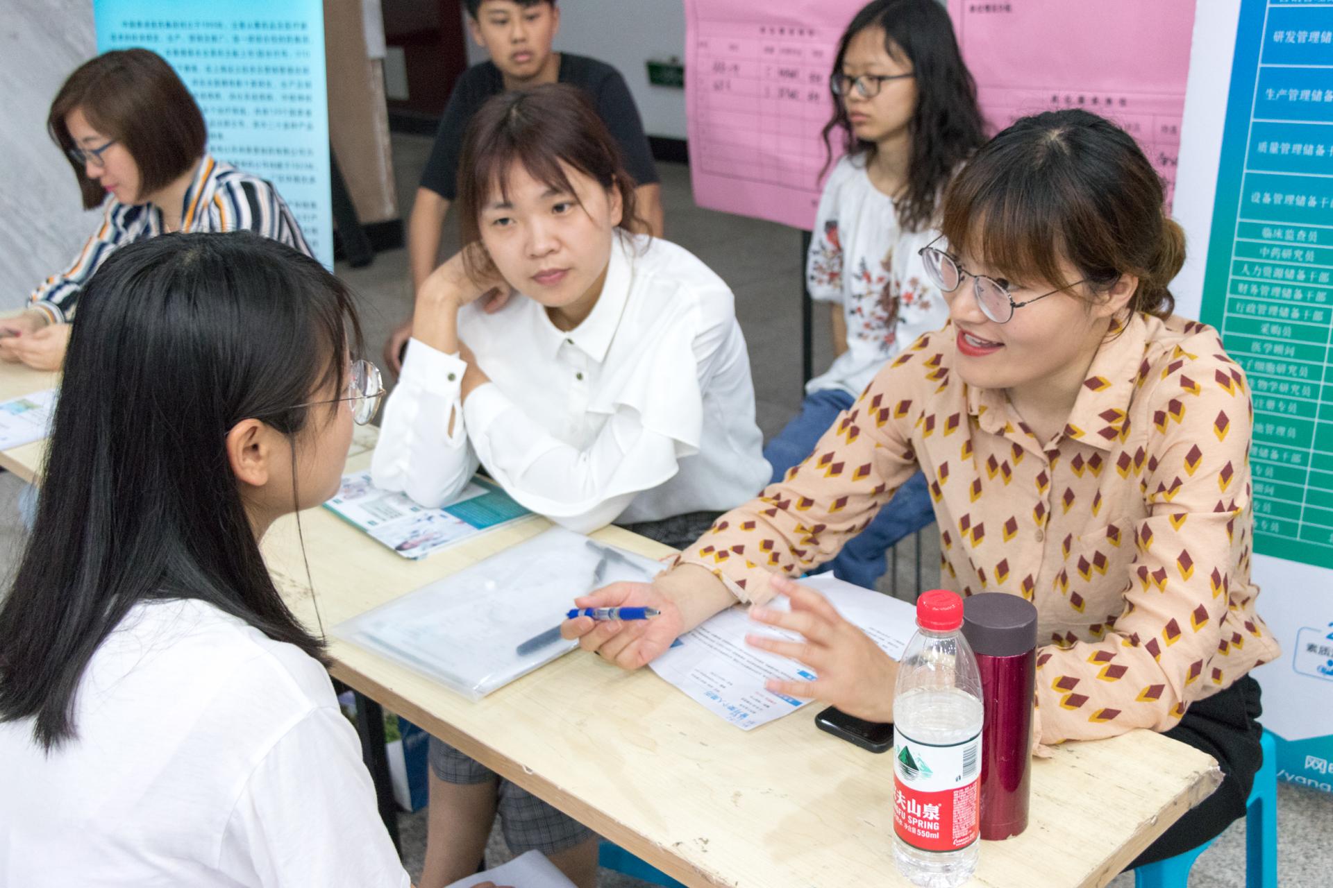 上午9点至12点,参会企业依次在生工楼报告厅进行了宣讲,通过公司介绍进一步加深同学对生物制药类企业的岗位需求、职业发展等方面的了解。同时,“卓越计划双选会”在生工楼大厅举行,学院共400余名员工参加,场面火爆。本次双选会提供了研发、质检、生产、销售等100余个实习岗位,20多位来自知名企业的人力资源负责人与同学们面对面交流,选聘储备人才,学院事先将企业反馈的招聘信息进行了汇总宣传,让同学们能够结合自身情况与对企业的了解递交简历。下午13点至16点,参会企业分别在生工楼各会议室进行了单独面试。