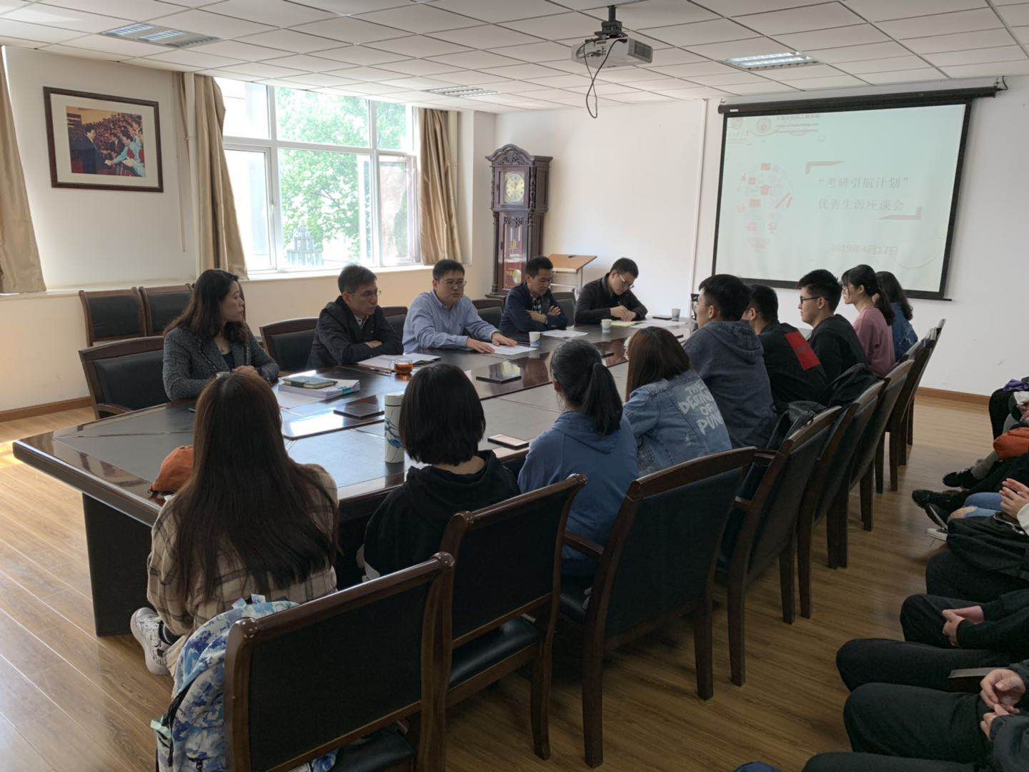 2019年4月17日上午,威廉希尔“考研引航计划”优秀生源座谈会在生工楼207会议室举行,经理郭凯、党委副书记周辉、副经理贾红华、团委副书记王康、2016级优秀员工代表等参会,学办主任朱皓主持会议。