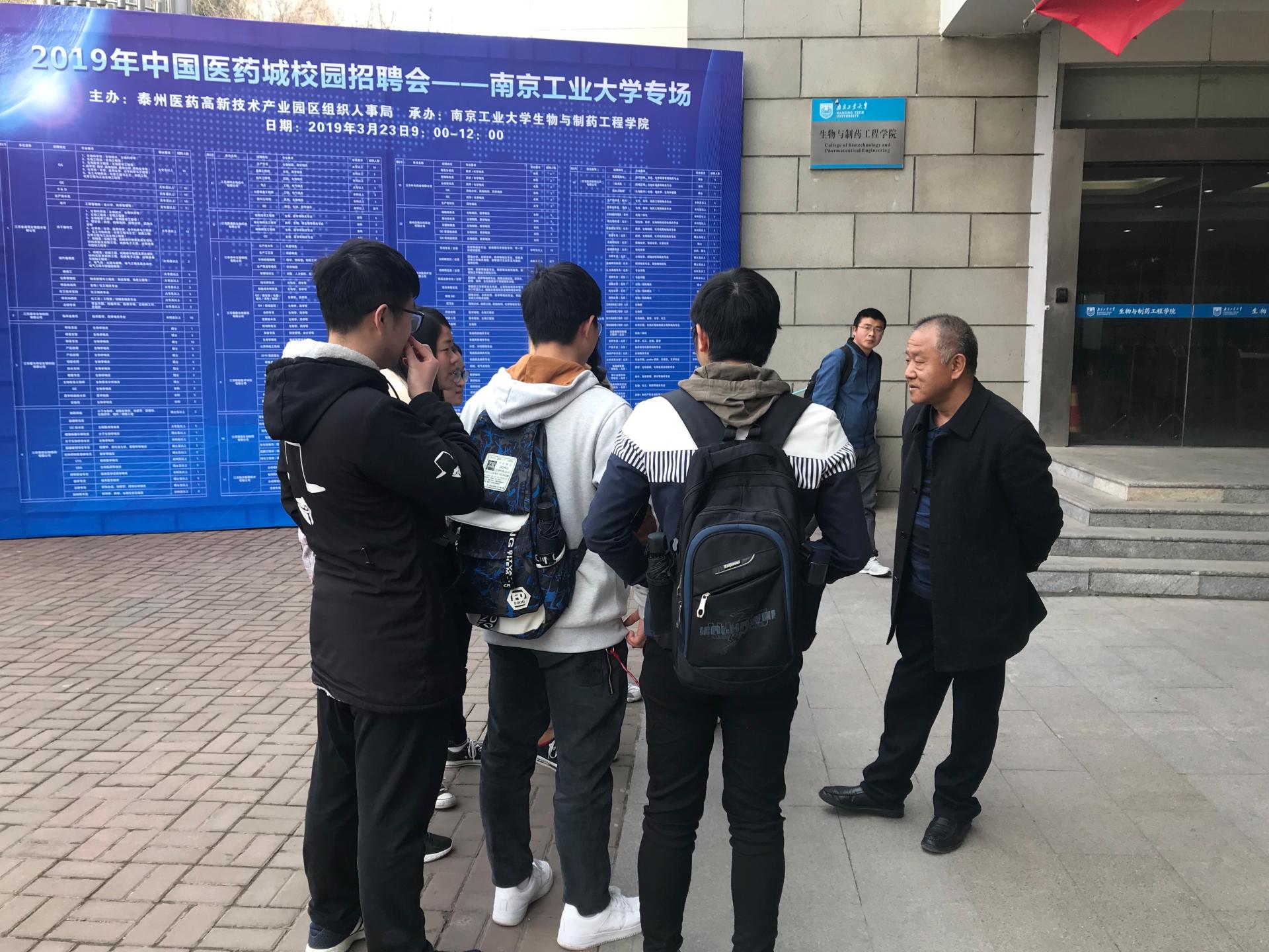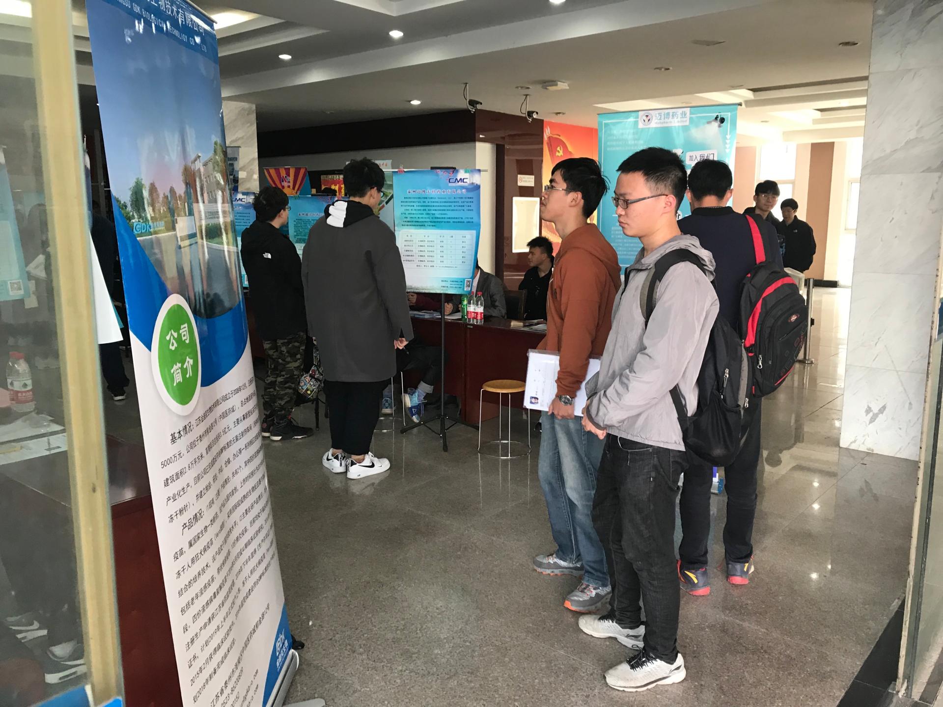 3月23日上午9:30,威廉希尔在生工楼一楼大厅举办中国医药城(泰州)专场招聘会。石药集团中诺药业有限公司、江苏泰康生物医药有限公司、泰州迈博太科药业有限公司、万全万特制药江苏有限公司等20余家企业来校招聘,提供了包括QA、QC、生产技术员、生产工艺员在内的近500个岗位。