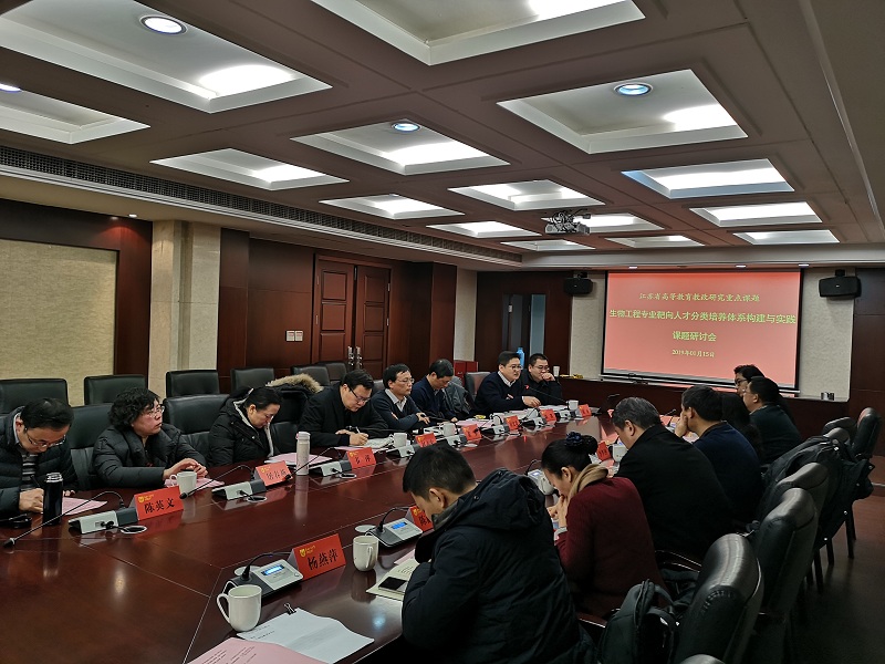 1月15日上午9点30,由威廉希尔williamhill和江南大学共同承担的江苏省高等教育教改研究重点课题“生物工程专业靶向人才分类培养体系构建与实践”研讨会在行政楼104会议室顺利召开。会议由威廉希尔williamhill教学事务部部长董军主持,江苏省教育厅蔡华处长、江南大学教务处副处长孙子文、轻工一流学科教学团队负责人李华钟、生物工程公司党委书记黄壮霞、经理许正宏、副经理尹健、威廉希尔williamhill副董事长赵志宏、教学事务部副部长居沈贵、公司党委书记韦萍、经理郭凯、副经理胡南等出席本次会议。
