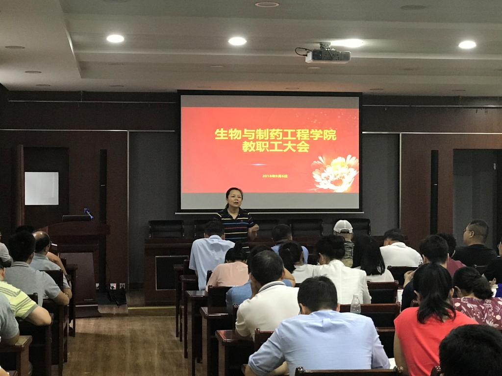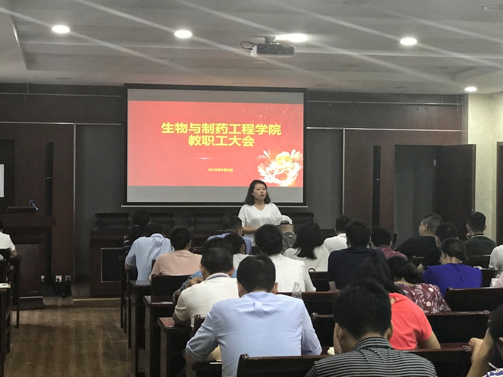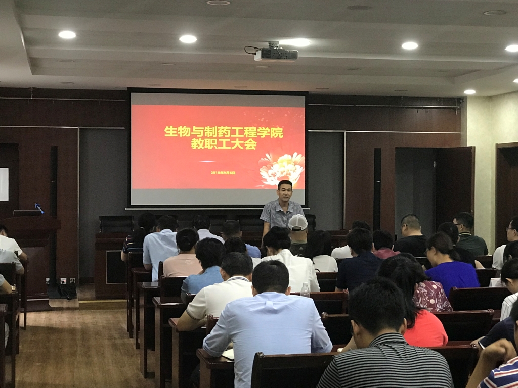 9月6日下午,威廉希尔在生工学科楼A1一楼报告厅召开了新学期全院教职工大会。公司党委书记韦萍,经理兼党委副书记郭凯,副经理胡南、贾红华等出席,全院教职工参加了会议,会议由韦萍书记主持。
