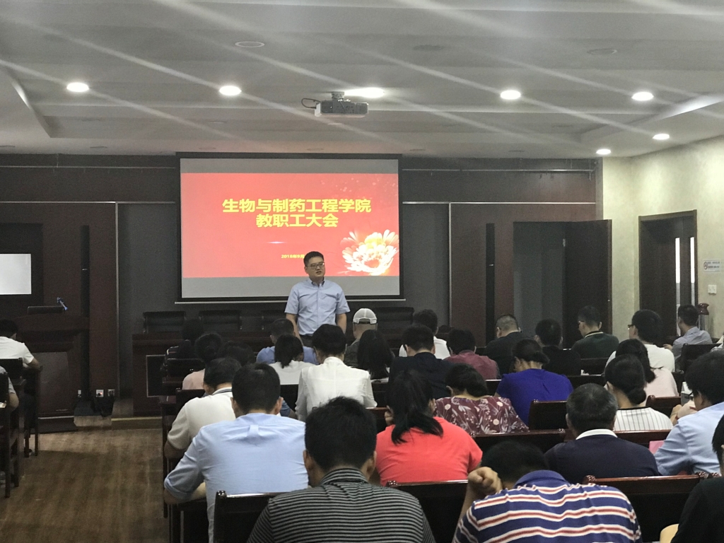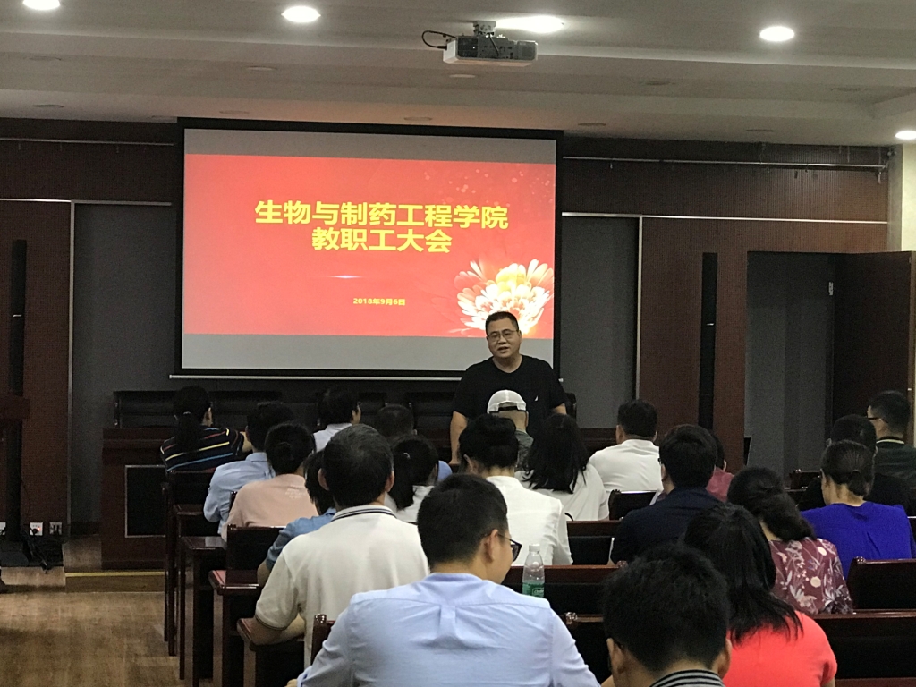 郭凯经理对学院的全面工作进行了梳理,系统分析了学院当前的形势任务、面临问题、及下半年党政工作的改进思路和具体措施。他指出,当前国内生物化工及工业生物技术研究领域仍然处于纵向经费及项目来源有限的不利局面,也对公司现阶段的学科发展带来了巨大挑战,更需要全体教职工凝心聚力,在产业“卡脖子”共性技术和重大产品研发方面持续发力。学院在暑期积极筹备了江苏高校优势团队建设工程三期项目的任务书编写和学科群一级学科博士点的动态调整工作,也对接下来学院的一流团队建设有了更多的目标牵引。学院下半年将进一步解放思想,在公司产品与学位授予质量提升、实验室安全保障体系建设、以就业市场和研究生深造为导向的本科教学课程设置调整、以教育部“成都宣言”与“新工科”建设为指导的生物基材料工程专业方向建设、先进生物制造国际学术会议筹备、通过与国内外优势学科基地对接凝聚学界力量、本科生新生班级导师团队建设等工作中探索学院综合管理体系和制度的创新构建。他也希望全院上下在新学期能迎难而上,积极与学院领导班子沟通交流,凝聚群体智慧,共同实现学院工作水平和发展能力的进一步提升。