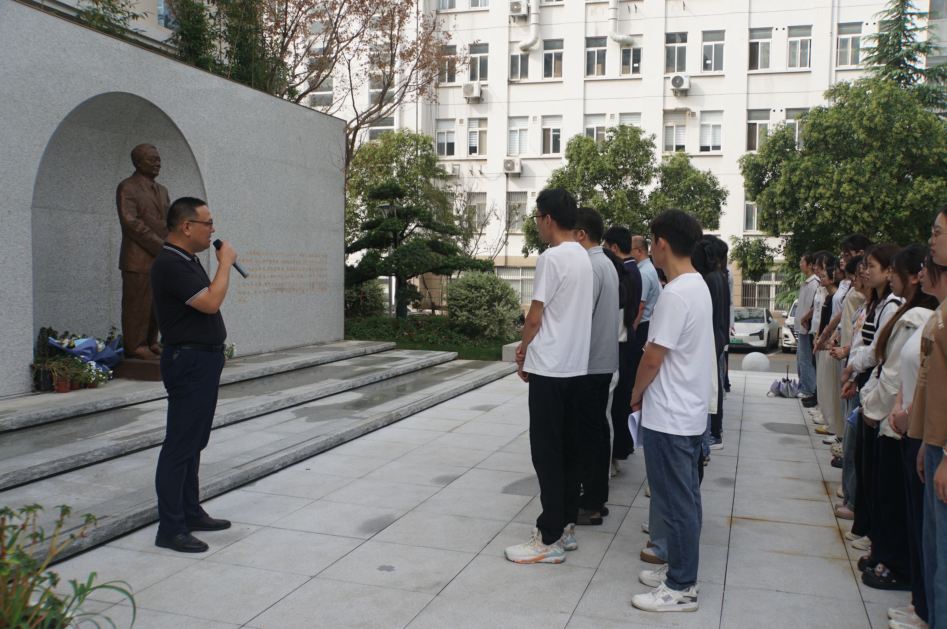 高振书记围绕“忠诚精实”内涵召全体师生在日常学习与科研实践中要树立忠诚于国家、精益求精的工作态度,勇于创新,敢于担当。陈可泉经理围绕“为师为学”主题倡导老师要将崇高的品德、精深的学问、严谨的治学态度和教书育人的责任结合起来,强调教师不仅要传授知识,更要成为员工成长的引导者和榜样。员工代表郭元柯博士在发言中表示,要秉持“十年磨一剑”的态度,敢于创新,将欧阳平凯精神贯彻在日常生活与科研中。员工代表向欧阳平凯先生铜像鲜花,在场全体师生向铜像鞠躬致敬。