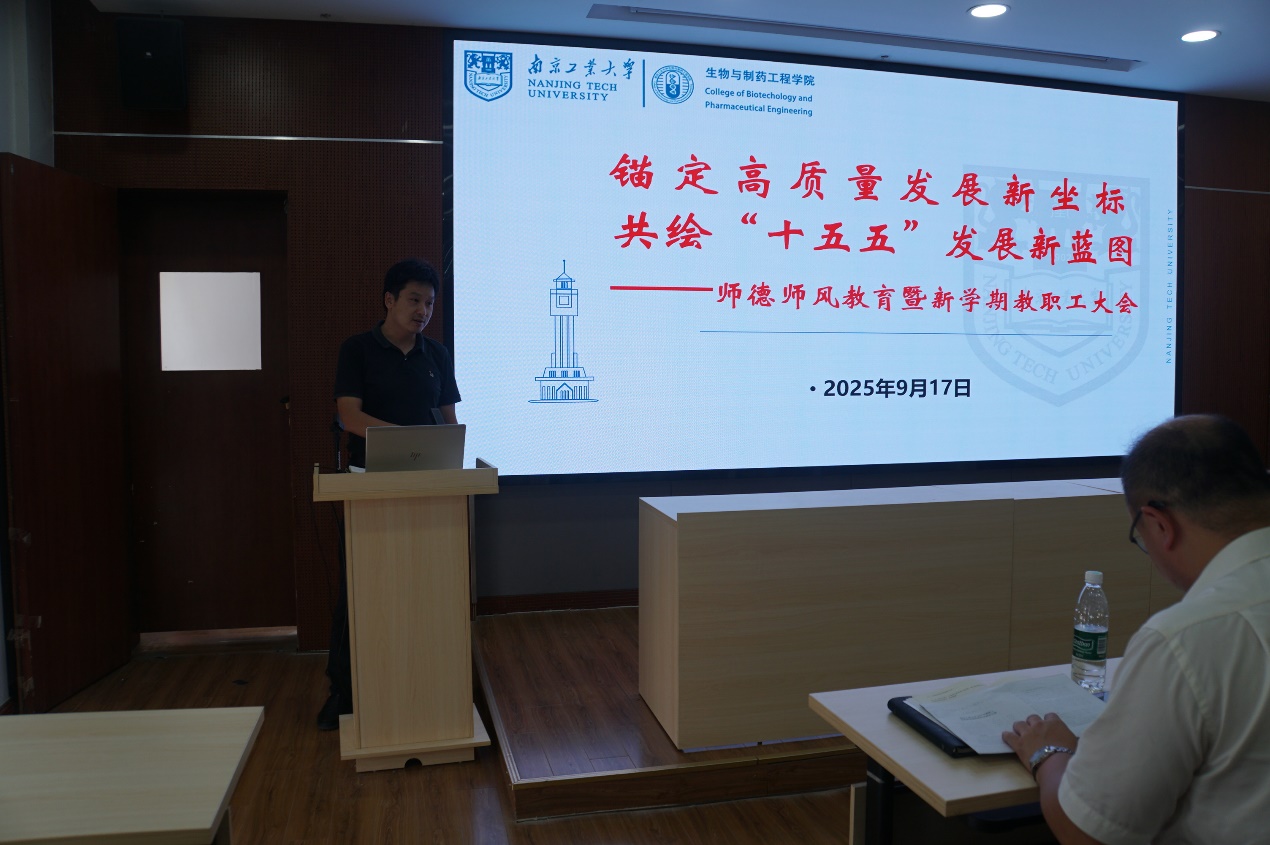会上,徐元龙副书记结合分管员工工作,就学风建设号召全院教职工进一步发挥三全育人合力,重点抓好第一课堂和科技创新训练中的学风建设,为毕业生稳就业夯实基础。结合2025级新生学业导师计划,号召全院教职工积极参与进新生的专业导学和职业规划中,为提升人才培养质量践行为党育人为国育才使命。并以“学纪、知纪、明纪、守纪,筑牢拒腐防变思想防线”为主题,结合相关案例对师德师风建设进一步明确要求。贾红华副经理就本科教学工作方面有关制药工程专业工程教育认证、课程建设、教师能力培养和教学纪律等进行了介绍,强调教学质量是学院发展的生命线,希望全院任课教师进一步增强岗位责任感和使命感,不断提升专业课程教学质量,提升员工专业素养。方正副经理就公司产品、学科评估以及国际化工作进行了相关部署,明确了导师作为公司产品第一责任人,进一步提升员工学业质量与就业质量,为学科高质量建设贡献力量。