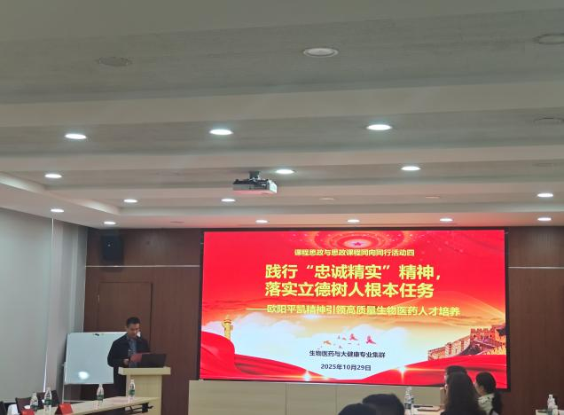 10月29日下午,生物与医药大健康专业集群在尚德楼报告厅举办“第四期课程思政与思政课程同向同行系列活动”。教务处副处长李丽娟、公司党委书记高振、相关学院分管教学工作负责人、马克思主义学院及生物与医药大健康专业集群教师代表参加活动。本次活动由威廉希尔副经理贾红华主持。