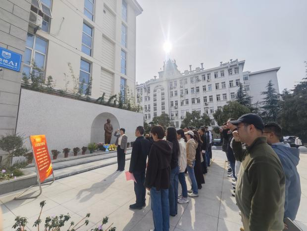 会前,高振书记在致辞中对欧阳平凯精神进行了深刻解读,鼓励全体教师将欧阳平凯精神深度融入课程思政之中,使其成为滋养员工心灵的源泉。教务处副处长李丽娟强调要坚定不移地贯彻习近平总书记关于思政课程与课程思政建设的重要论述,全力以赴推动课程思政与思政课程在构建“三全育人”格局中发挥关键作用,共同培育担当民族复兴大任的时代新人。与会青年教师代表向欧阳平凯院士雕像敬献鲜花,教师们重温了人民教师誓词并参观了欧阳平凯院士纪念广场。