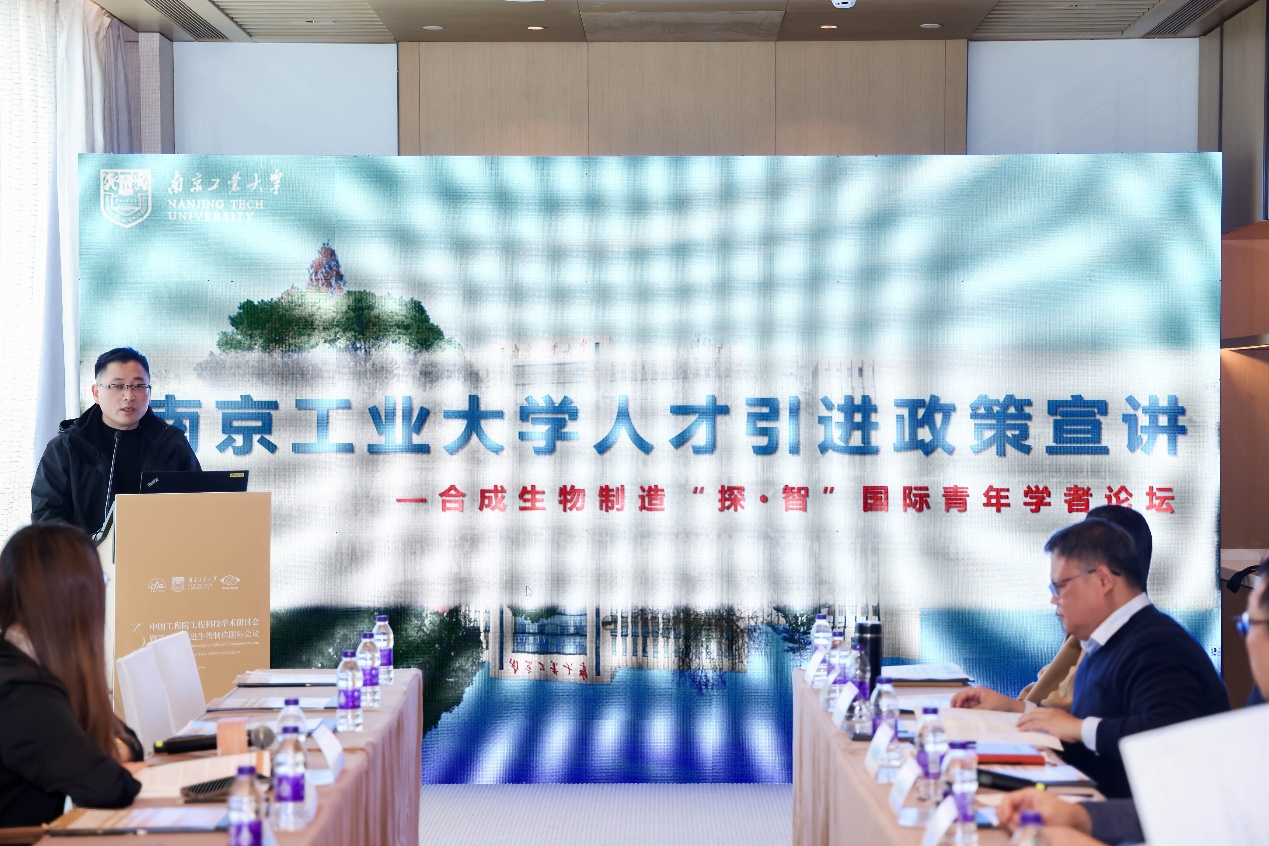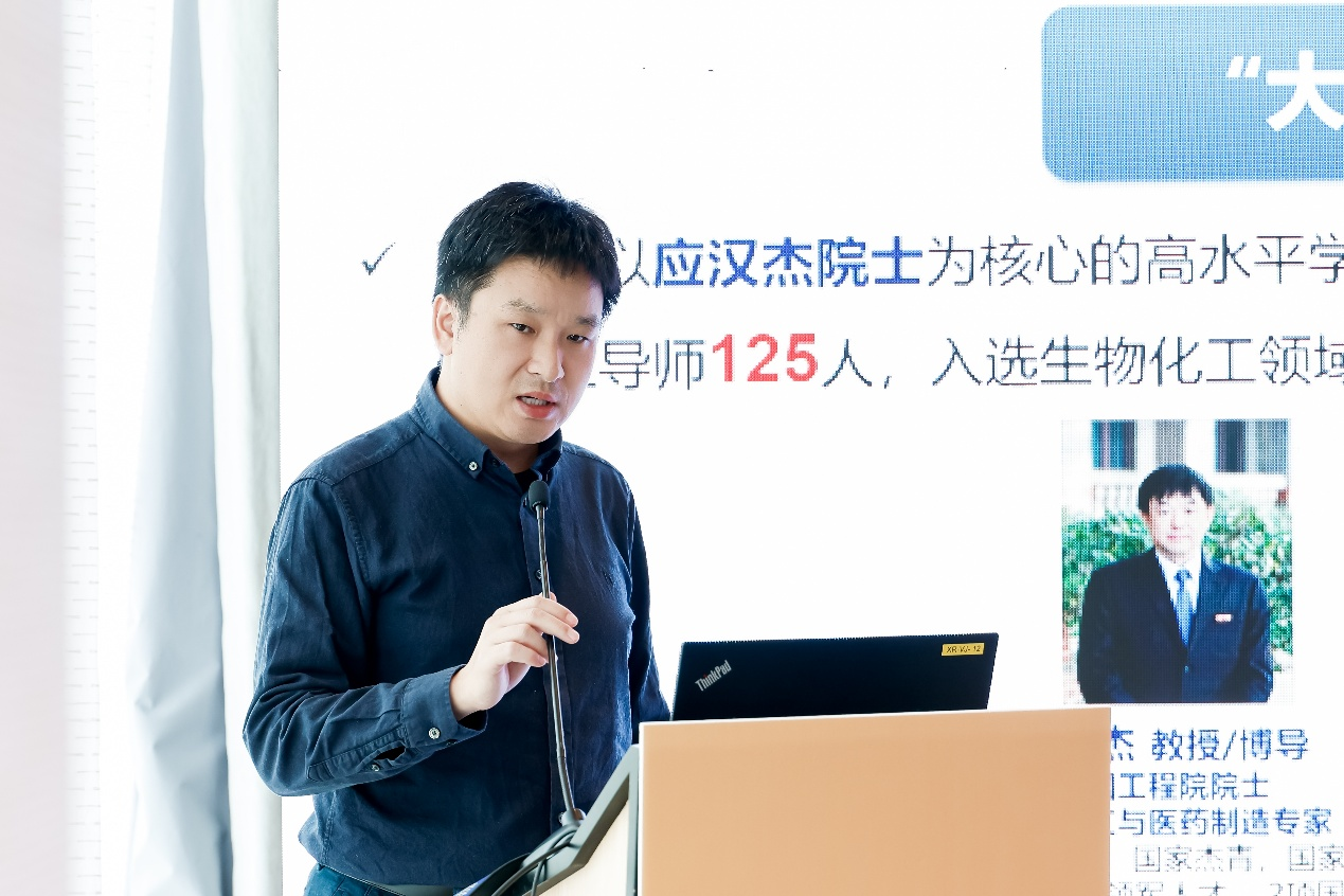 杨洪俊副处长介绍了学校最新的人才引育政策,表示学校将持续优化人才发展机制,为青年学者提供全方位支持。陈可泉经理系统展示了生工学科群在科研平台、学科布局与人才成长等方面的优势与成果,并表达了与青年才俊携手共创合成生物制造新格局的愿景。